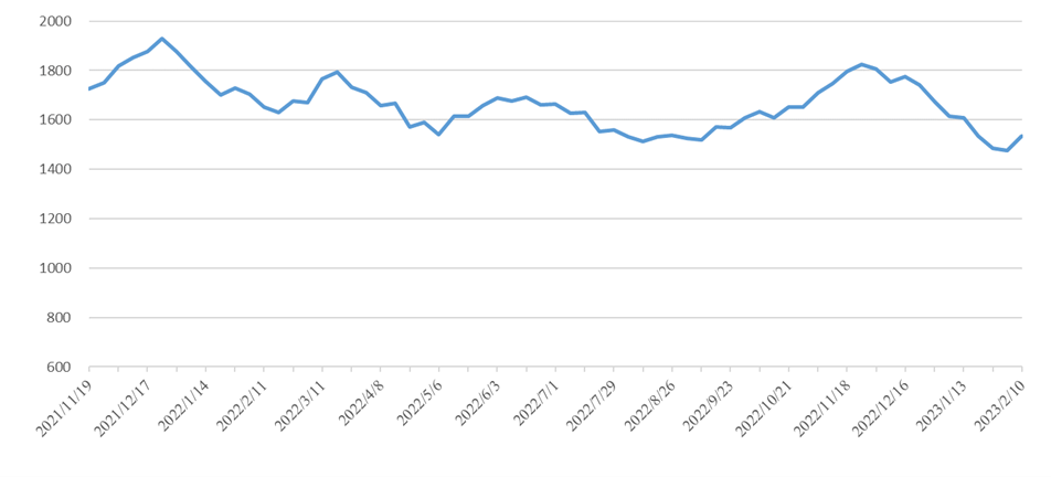 內(nèi)貿(mào)集運(yùn)指數(shù)企穩(wěn)上揚(yáng),本期(2023年2月04日至2月10日)中國內(nèi)貿(mào)集裝箱運(yùn)價(jià)指數(shù)(XH·PDCI)報(bào)1535點(diǎn),較上期內(nèi)貿(mào)集裝箱運(yùn)價(jià)指數(shù)環(huán)比上漲58點(diǎn),漲幅3.93%,同比下跌117點(diǎn),跌幅7.08%。其中華南、華北、華東、東北、山東區(qū)域指數(shù)上漲,福建區(qū)域指數(shù)下跌;四條流向指數(shù)全面上漲。6個(gè)區(qū)域子指數(shù)“5漲1跌”,4個(gè)流向子指數(shù)全面上漲。