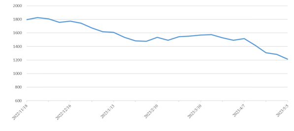 節(jié)后市場保持下行趨勢(2023年4月29日至5月05日)中國內(nèi)貿(mào)集裝箱運(yùn)價(jià)指數(shù)環(huán)比同比下跌。
